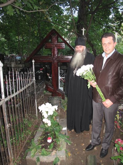 От имени Императорского Православного Палестинского Общества архимандрит Тихон (Затекин) и Александр Николаевич Панин возложили цветы на могилу Высокопреосвященного Иннокентия (Ястребова) и помолились о его упокоении. Могила отца Владыки была зафиксирована и сфотографирована, были сделаны фотографии прилегающей территории, крест, надпись на кресте осмотрены и подробно описаны.