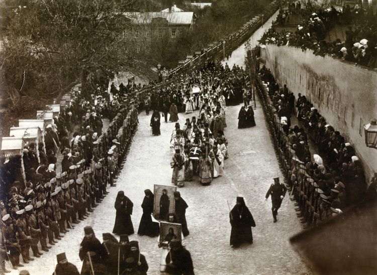 22 апреля 1910 года мощи святой Княгини Евфросинии были торжественно пронесены по городу Киеву. Возглавляли крестный ход с мощами члены ИППО: митрополит Киевский Флавиан (Городецкий) — почетный член ИППО, епископы  Черкасский Назарий (Блинов), Каневский Иннокентий (Ястребов), Уманский Феодосий (Олтаржевский), Чигиринский Павел (Преображенский), Полоцкий Серафим (Мещеряков) и Великий Князь Константин Константинович. Это было поистине необыкновенное шествие. Все улицы Киева были заполнены многотысячной толпой людей. Мощи были доставлены на пароход «Головачев», который отправился в дальний путь по реке Днепр.