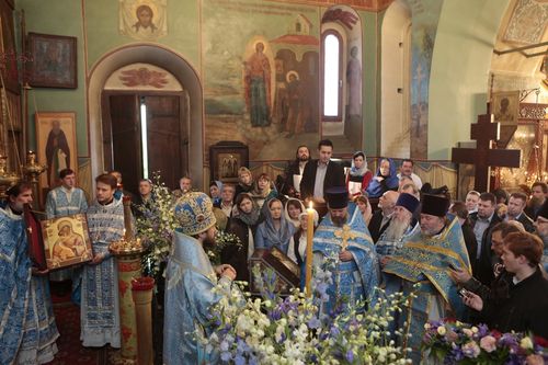 Владыке Илариону сослужили настоятель храма, главный редактор Издательства Московской Патриархии протоиерей Владимир Силовьев, благочинный Даниловского округа протоиерей Олег Воробьев, клирики храма.