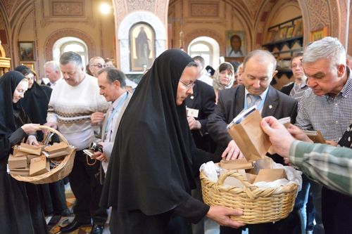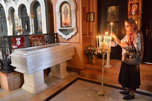 В этом храме покоятся святые мощи преподобномученицы великой княгини Елисаветы Феодоровны. Перед отъездом делегация ИППО возложила цветы в Москве на могилу ее любимого супруга великого князя Сергея Александровича. Приземлившись на Святой Земле, члены ИППО первым делом поспешили отдать дань памяти своей второй председательнице и небесной покровительнице, поклониться ее мощам.