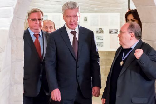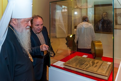 Н. Н. Лисовой и почетный член ИППО митрополит Ювеналий на юбилейной выставке ИППО в Манеже.