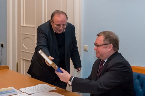 Вручение книги «Откровение Святой Земли» с авторским автографом Председателю ИППО С. В. Степашину.