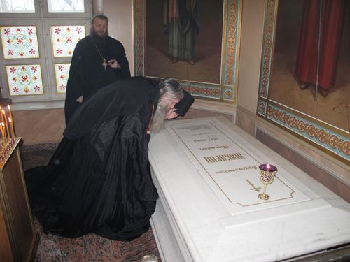 На следующий день в шесть часов вечера прибывший в обитель епископ Алексий с духовенством епархии совершил перенос гроба из келий в Алексеевскую церковь, где затем была совершена заупокойная всенощная. В течение всего следующего дня монастырская Алексеевская церковь была полна народом, который приходил сюда поклониться праху своего любимого архипастыря.