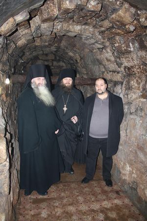 У корпуса, где жил и преставился Преосвященный Макарий (Миролюбов), члены ИППО обсудили возможность установки на фасаде корпуса памятной гранитной доски, рассказывающей о жизни и трудах святителя.