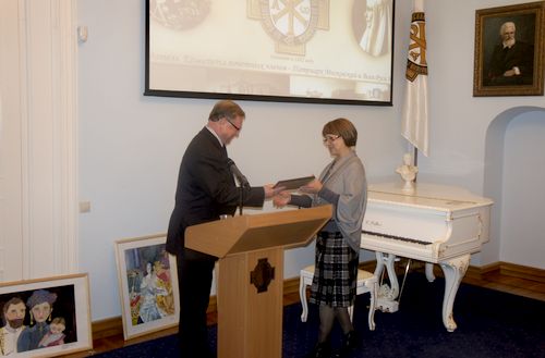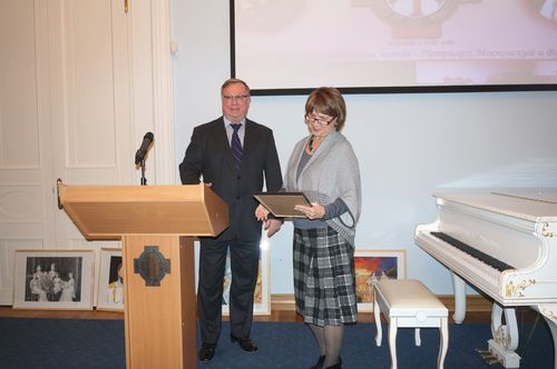 После завершения лекции-концерта Сергей Степашин от всей души поблагодарил Светлану Степанову за познавательный рассказ и давнее плодотворное сотрудничество с Обществом и вручил ей Почетную грамоту Императорского Православного Палестинского Общества.