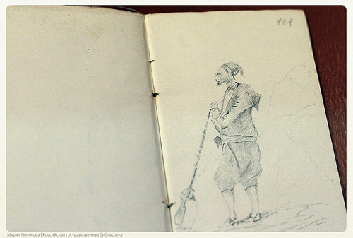Интересны экспонаты, имеющие отношение к Петру Ивановичу Севастьянову— археологу и юристу, неутомимому собирателю христианских древностей. Завсегдатаи и друзья РГБ наверняка знают, что часть рукописного собрания Петра Ивановича сегодня находится здесь. На выставке можно увидеть его записные книжки и рисунки, которые он делал во время путешествий по странам христианского Востока.