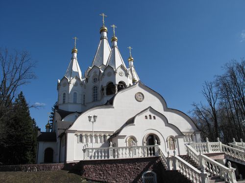 Архимандрит Тихон, иеродиакон Евстафий и Александр Николаевич Панин помолись у деревянного храма на территории полигона. Его алтарь вплотную подходит к одному из расстрельных рвов. Однокупольная церковь, по образцу северных русских храмов, была создана по проекту сына расстрелянного на полигоне священника Михаила Шика - известного художника, архитектора Дмитрия Михайловича Шаховского-Шика. Храм-на-крови, так многие называют сегодня эту церковь. Ведь вся земля полигона пропитана кровью невинных жертв.