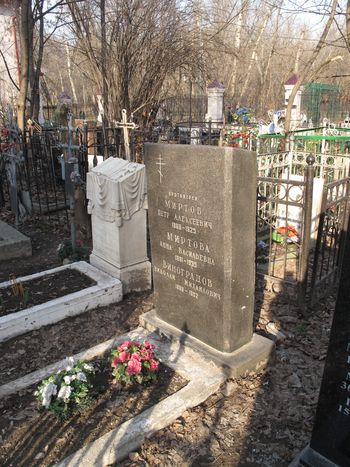 Протоиерей Петр Алексеевич Миртов похоронен на Черкизовском кладбище, расположенном у старинного храма во имя пророка Божия Илии, что в селе Черкизово.