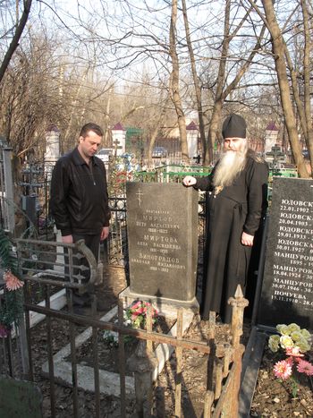Архимандрит Тихон (Затекин), А.Н.Панин и иеродиакон Евстафий (Поляков) разыскали могилу протоиерея Петра Алексеевича Миртова, чтобы отдать дань памяти этому яркому человеку, преуспевшему на просветительской ниве за трезвый образ жизни и состоявшего действительным членом в Императорском Православном Палестинском Обществе.
