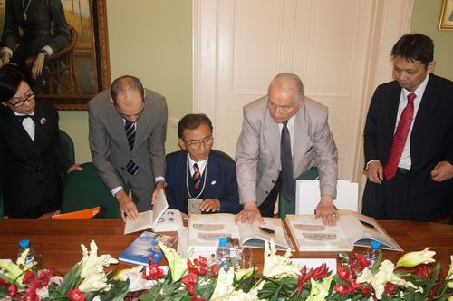 Вчера Центр Императорского Православного Палестинского Общества в Москве посетил бывший глава Управления национальной обороны Японии, бывший депутат Парламента Японии, в настоящее время член Олимпийского комитета Японии Тосицугу Сайто с супругой и министром-советником Посольства Японии в Российской Федерации Котаро Оцуки.
