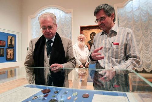 Впервые на выставке будут представлены: фрески с Афона XIV-XVIII веков; выполненное в технике энкаустики изображение Богоматери VII-VIII веков, датировку которого никто за прошедшие четырнадцать лет не опроверг, и створки триптиха (Италия, VIII или XII век). Среди уникальных памятников – медальон с изображением Богоматери Никопеи (Победная), выполненное чернью по керамике в VII веке; фрагменты саркофагов с надгробными надписями; купленное Эрмитажем уникальное евхаристическое блюдо – патена с клеймами Анастaсия (Абхазия, начало VI века). Впервые на византийской экспозиции специальная витрина отдана изделиям из стекла от I до X века н.э.
