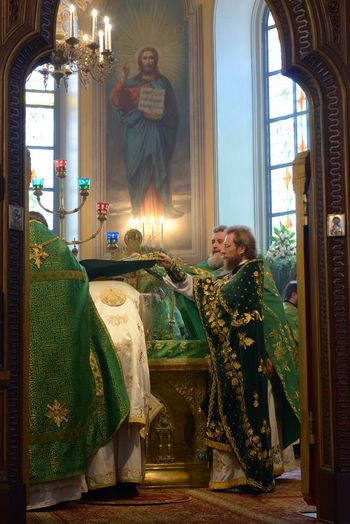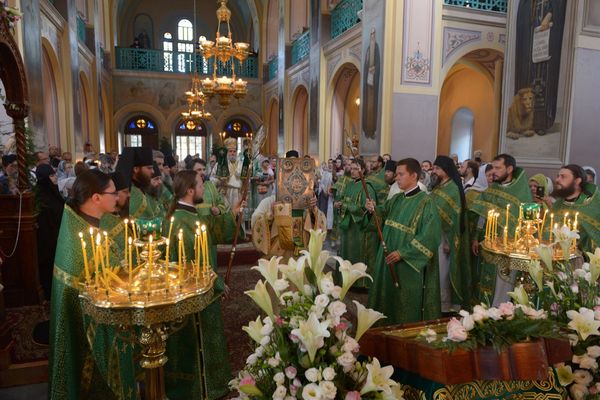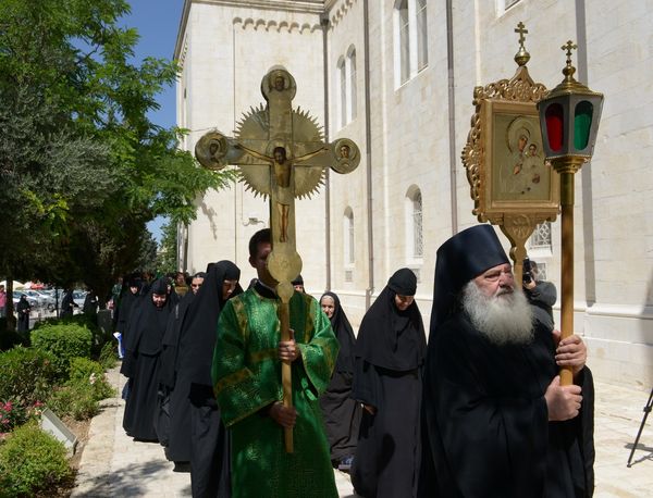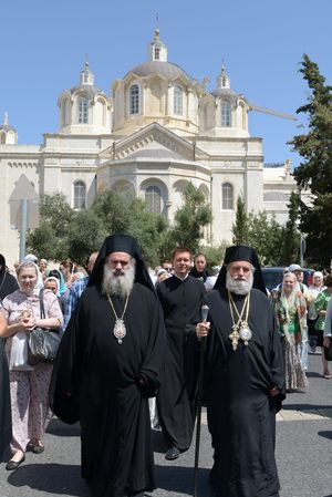 9 июня, в Духов День десятки верующих встречали у входа в Свято-Троицкий собор иерархов Иерусалимского патриархата, прибывших для совместного праздничного богослужения со священством Русской Духовной Миссии, чтобы почтить престольный праздник Миссии. В этот день Божественную литургию возглавил Генеральный Епитроп Патриарха Феофила митрополит Капитольядский Исихий, которому сослужили архиепископ Севастийский Феодосий, ВРИО начальника РДМ игумен Феофан, начальник РДМ РПЦЗ архим. Роман, духовенство Миссии и приезжие священнослужители, а также игумении иерусалимских монастырей, многочисленные сестры и паломники.