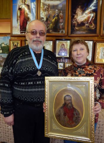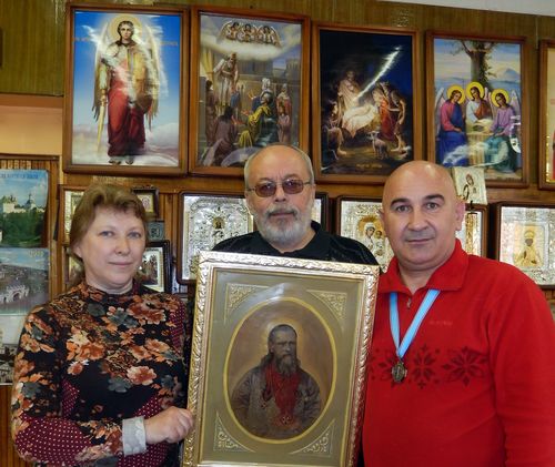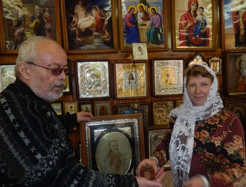 Гости привезли с собой прижизненный портрет почетного члена ИППО святого праведного Иоанна Кронштадтского, 1899 года написания, с автографом батюшки Иоанна. Портрет был подарен Сергею Панфилову местной жительницей.