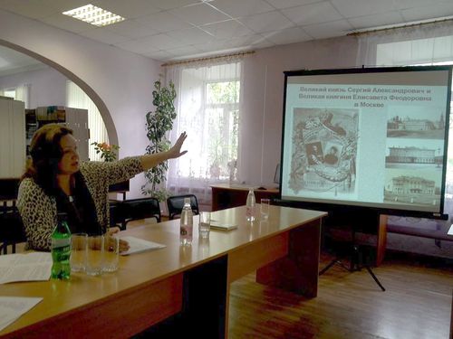 В Центральной городской библиотеке состоялась школа лекторов. А.В. Громова, кандидат исторических наук, выступила с докладом и одновременно провела мастер-класс для учителей по истории Алапаевска, России, о деятельности великой княгини Елизаветы Федоровны и великого князя Сергея Александровича в Москве. В выступлении были представлены новые исследовательские материалы по теме.