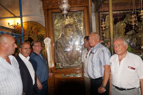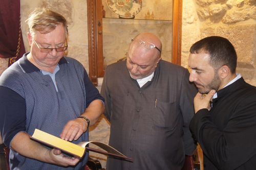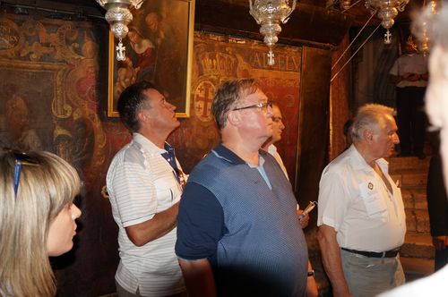Члены делегации ИППО пообщались с духовенством. Делегацию Императорского Православного Палестинского Общества встречали представитель Иерусалимского Патриархата архимандрит Рафаил и священник Армянской Апостольской Церкви Хат Джундурян.  Члены Императорского Православного Палестинского Общества с удовлетворением отметили, что благодаря  объединенным усилиям всех трех Церквей, подходит к завершению первый этап реставрации базилики - ремонт старинной  и местами прогнившей крыши. Вода, протекавшая сквозь многочисленные дыры в кровле, много лет угрожала древним мозаикам и фрескам, остальному убранству храма. В 2012 году базилика была внесена в список Всемирного наследия ЮНЕСКО, в прошлом году началась ее масштабная реставрация. После крыши будут отреставрированы витражи и внутренние интерьеры. В пожертвованиях, собранных на проведение работ, есть и доля России.