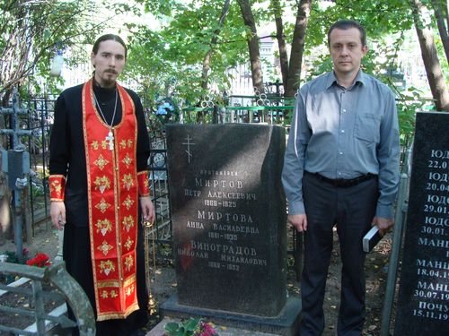 Александр Николаевич Панин и насельник Николо-Берлюковского мужского монастыря иеромонах Тимофей (Дьяконов) посетили Черкизовское кладбище города Москвы, где погребен митрофорный протоиерей, член ИППО Петр Алексеевич Миртов. На могиле митрофорного протоиерея Петра Миртова была совершена лития об упокоении протоиерея Петра. Служение литии возглавил иеромонах Тимофей (Дьяконов).