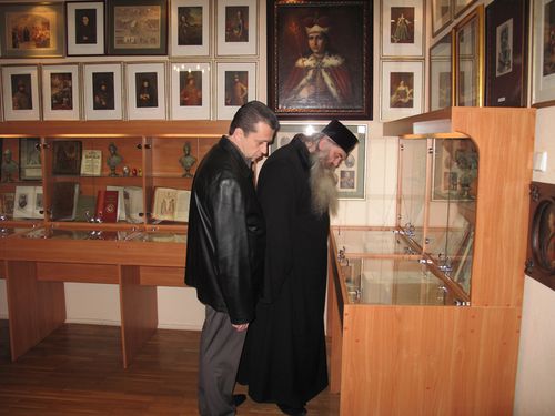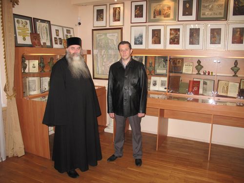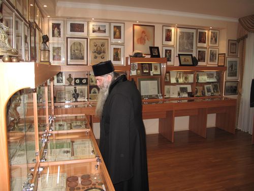 В поисках новых сведений для книжного проекта члены ИППО архимандрит Тихон и А.Н. Панин внимательно осмотрели все залы музея, ознакомились с раритетными фотографиями, гравюрами, специально выпущенными к 300-летию Дома Романовых. Для членов ИППО была проведена подробная экскурсия по музею, после которой состоялось общение с сотрудниками музея. Архимандрит Тихон передал в дар музею свою книгу «Григорий Распутин-Новый. Верхотурские страницы».