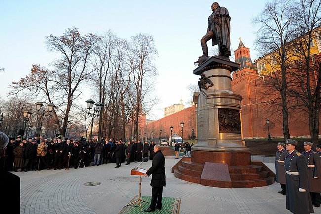 Сегодня Президент России Владимир Путин принял участие в церемонии открытия памятника императору Александру I близ Боровицких ворот Московского Кремля, в Александровском саду, который был разбит по указу императора и в память о нем получил свое название.