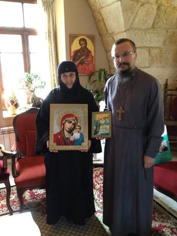 На молитвенную память игумен Арсений от имени всей паломнической группы преподнес игуменье Мариам икону преподобного Нила Столобенского, русского подвижника XVI века.