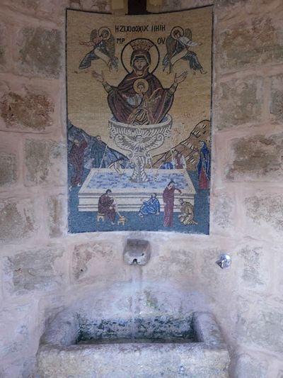 Мтаниус Башур поклонился святыням монастыря. На территории монастыря есть святой источник, над которым возведена круглая башенка, а внутри на стене написана икона Божией Матери "Живоносный источник". Сюжет связан с прославлением целебного источника за городской стеной Константинополя у Силиврийских ворот, на месте которого, по преданию, в V в. император Лев I основал монастырь «Живоносный источник». Это событие широко почитается в православном мире, в память о нем освящен и монастырь в Альжузии.