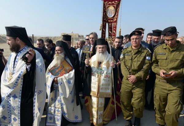 Блаженнейший Патриарх прибыл в греческий православный монастырь св. Иоанна Предтечи, находящийся недалеко от реки, в 11 часов и совершил там службу 9-го часа. Его встречали отряды арабских скаутов, сопровождавшие затем крестный ход на Иордан, в котором участвовало духовенство и множество паломников.