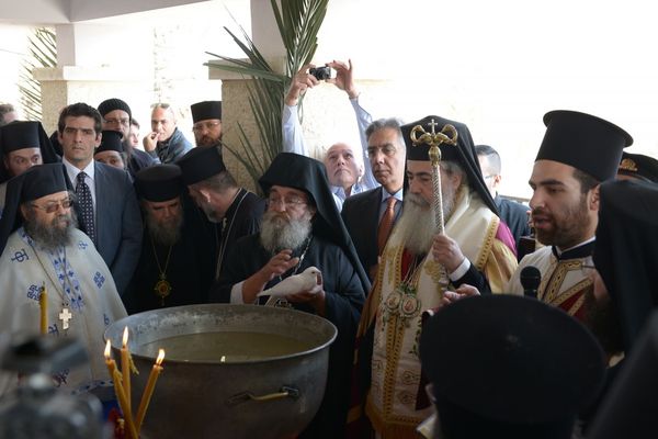По греческой традиции великое освящение воды совершается один раз в году в Крещенский сочельник. Блаженнейший Патриарх Святого Града Иерусалима и всей Палестины Феофил и в этом году совершил Чин великого освящения воды на месте Крещения Иисуса Христа на западном берегу реки Иордан.