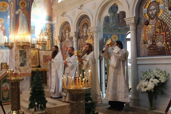 Праздничную Литургию в Троицком соборе возглавил казначей Миссии архимандрит Сергий. По окончании Литургии был совершен чин великого освящения воды.