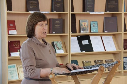 Галина Васильевна кратко рассказала семинаристам о нескольких представленных книгах, а также о жизни и деятельности авторов-литургистов. Наследие Алексея Дмитриевского востребовано среди семинаристов, несколько