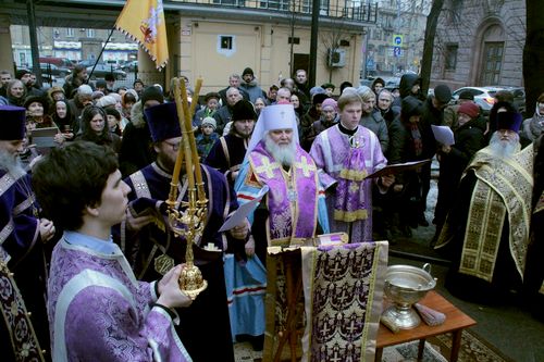 Чин освящения поклонного креста совершил митрополит Истринский Арсений, первый викарий Святейшего Патриарха Московского и всея Руси в сослужении московского духовенства.