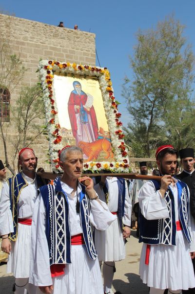 На праздник в монастырь преподобного Герасима Иорданского прибыло около десяти автобусов с паломниками из разных стран, в том числе из России. Поток паломников и туристов в обитель возобновился относительно недавно: современный этап в истории монастыря начался в 70-е годы прошлого века, когда под руководством греческого иеромонаха Хризостома началось возрождение обители из руин.