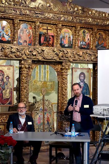Первый докладчик – ответственный редактор «Журнала Московской Патриархии» Сергей Чапнин напомнил, что инициированная В. Лепахиным конференция называлась сначала «Иконология и иконичность». Понятие «иконичность», с которым так или иначе соотносилось большинство докладов, не является умозрительной отвлеченностью из числа тех, которые быстро устаревают. По словам С. Чапнина, теория иконичности дает «методологическую и богословскую основу для трезвого анализа мира, в котором мы живем». Это особенно важно в контексте общей «девальвации смыслов», идеологизации Православной Церкви, которая переживает «постимперский надлом»; в условиях, когда государственная идеология все чаще апеллирует к понятию «священного» (сакрализация «вечного огня», Крыма как «крещенской купели» и т.д.), - отметил С. Чапнин.