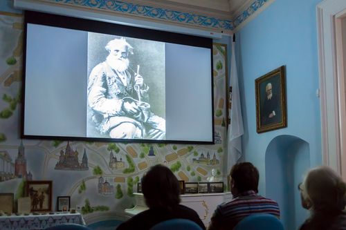 Ведущий чтений Виктор Иванович Комиссаров, директор музея путешествий и паломничества к святым местам, действительный член Императорского Православного Палестинского Общества, представил собравшимся описания, зарисовки и фотографии русских паломников, которые ходили по святым местам. Облик их был хорошо знаком всякому на Руси - посох, котомка за плечами, кружка или походный чайник. Не раз образ русского богомольца вдохновлял русских художников.