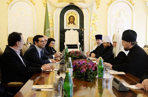 9 апреля 2015 года в Патриаршей и Синодальной резиденции в Свято-Даниловом монастыре состоялась встреча Святейшего Патриарха Московского и всея Руси Кирилла с премьер-министром Греческой Республики Алексисом Ципрасом.
