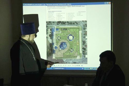 Представляя участникам совещания проект библейского сада, иерей Симеон Есин показал эскизы и чертежи в режиме фотопрезентации. В своем выступлении священник отметил:
