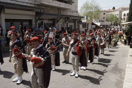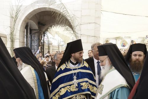 В завершение богослужения духовенство и миряне совершили торжественный крестный ход вокруг храма в сопровождении арабской молодежи в красочных скаутских нарядах с барабанами и волынками. Благовещение Пресвятой Богородицы совпадает в Назарете с празднованием Дня города, поэтому торжества продолжились и после богослужения.