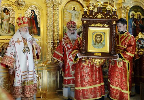 В дар храму Святейший Владыка передал образ Спаса Нерукотворного.