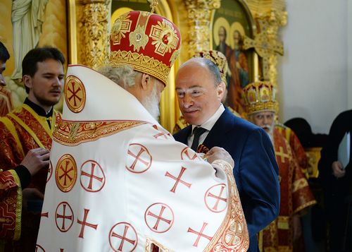Во внимание к помощи в строительстве храма Преображения Господня на Преображенской площади г. Москвы Святейший Патриарх Московский и всея Руси Кирилл вручил награды ряду членов Попечительского совета.
