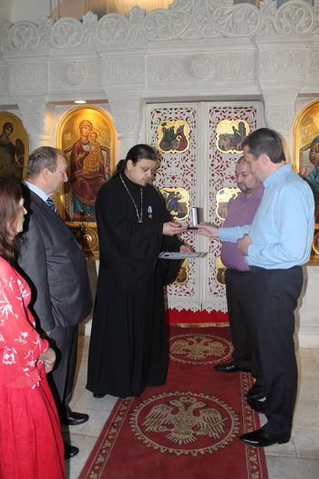 Протоиерей Дмитрий поблагодарил за столь памятный дар и просил передать свое благословение председателю Иерусалимского отделения ИППО Павлу Викторовичу Платонову.