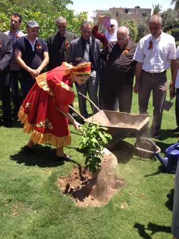Со словами приветствия  выступили представитель России при ПНА Рудаков А.Н., советник Президента Палестины Саиб Арикат, заместитель губернатора провинции Иерихон Джамал Рджуб, заместитель мэра г. Иерихон Джуди Саид. Всем присутствующим были вручены памятные георгиевские ленты.