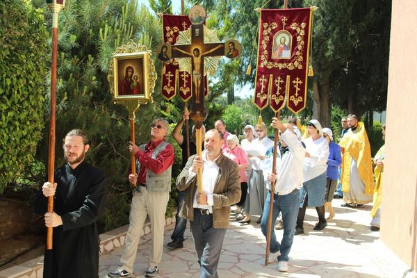 В конце богослужения духовенство и все молящиеся совершили пасхальный крестный ход к гробнице праведной Тавифы, которая находится на территории русского подворья. Именно там, по преданию, была похоронена и воскрешена из мертвых апостолом Петром святая праведная Тавифа. Она была исключительно деятельной и милосердной женщиной, ткала полотно и шила из него одежду для вдов, сирот и местных бедняков. Сегодня рукодельницы считают святую своей покровительницей.