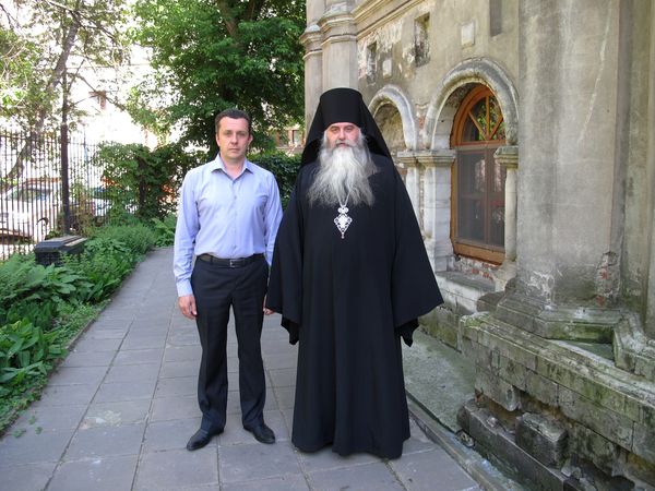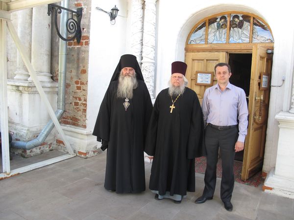 При очередном посещении бывшего Симонова монастыря настоятель храма Тихвинской иконы Божией Матери священник Андрей Горячев тепло встретил архимандрита Тихона и Александра Николаевича Панина.