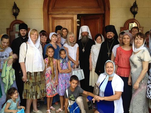После этого гости из России проследовали в приходской салон, где им было предложено кофе. Митрополит Кирилл ответил на многочисленные вопросы прихожан.