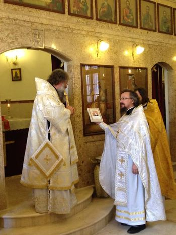 В ответном слове игумен Арсений поблагодарил главу Екатеринбургской митрополии за визит и за совместную евхаристическую молитву, и на память о посещении им Ближнего Востока подарил Его Высокопреосвященству книгу Святейшего Патриарха Московского и всея Руси Кирилла «Свобода и ответственность», изданную в Ливане на двух языках — русском и арабском.