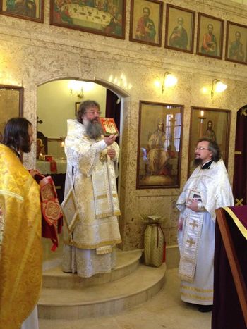 По окончании богослужения Его Высокопреосвященство обратился к прихожанам со словом назидания и утешения. Высокий гость подарил Подворью богослужебные покровцы, вышитые в одном из женских монастырей Екатеринбургской епархии, а также икону святых царственных страстотерпцев.