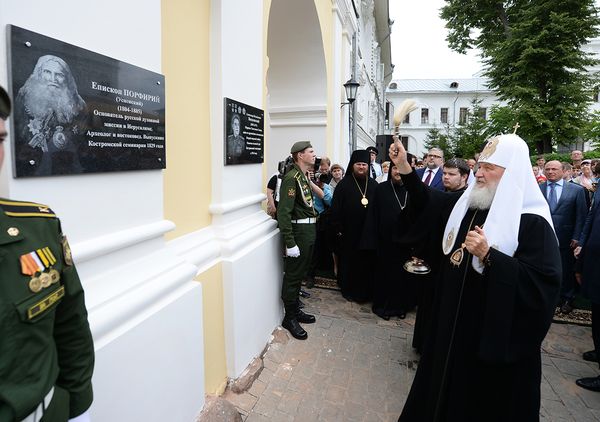 19 июля, в ходе визита в Кострому, Патриарх Московский и всея Руси Кирилл принял участие в открытии мемориальных знаков выпускникам Костромской духовной семинарии - маршалу Советского Союза Александру Василевскому и епископу Чигиринскому, викарию Киевской епархии Порфирию (в миру - Константин Успенский), - сообщает пресс-служба губернатора Костромской области.