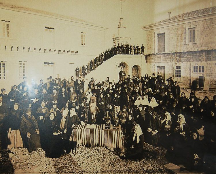 Народные чтения для русских православных паломников читает протоиерей Александр Анисимов. Фото монаха Тимона 1888 г.