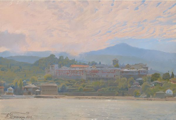 Вид на монастырь Ватопед с моря.