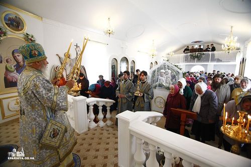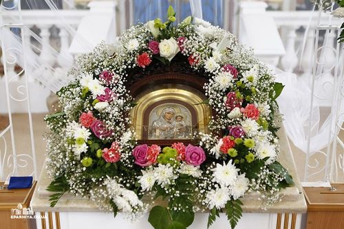 После завершения литургии был отслужен праздничный молебен, а затем Владыка обратился к многочисленным верующим с архипастырским словом, в котором поздравил их с праздником и освящением нового храма, подчеркнув, что по преданию Иерусалимская икона была написана святым апостолом и евангелистом Лукой, и с той поры она почитается во всем православном мире. В 463 году сей образ был перенесен в Константинополь. В 988 году икона была принесена в Корсунь и подарена святому равноапостольному князю Владимиру. Когда новгородцы приняли христианство, то святой Владимир отправил им этот образ. Иоанн Грозный в 1571 году перенес икону в Московский Успенский собор.
