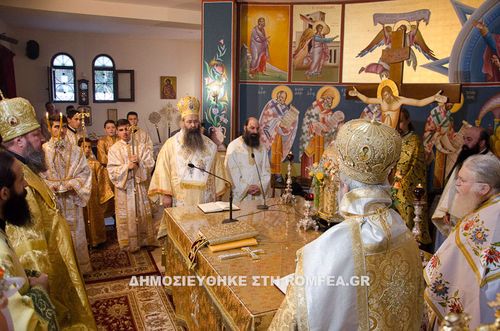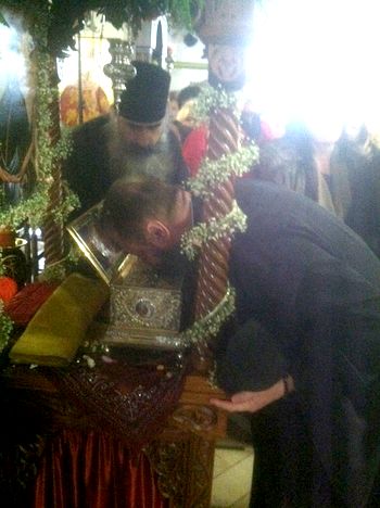 На греческой земле паломники посетили также храм Воздвижения Креста Господня г. Катерини, куда был доставлен Пояс Пресвятой Богородицы из монастыря Ватопед со Святой Горы Афон. Святыню доставил игумен Ватопедской обители архимандрит Ефрем (Куцу). Архиепископ Савва и паломники благоговейно поклонились святыне и пропели величание Божией Матери на славянском языке. 1 ноября, в Неделю 22-ю по Пятидесятнице, в последний день своего паломнического визита по святыням Греции, архиепископ Тираспольский и Дубоссарский Савва по просьбе митрополита Китрского, Катерининского и Платамонского Георгия возглавил Божественную литургию в этом храме. Его Высокопреосвященству сослужили Митрополит Ливийский Феофилакт (Александрийский патриархат), Митрополит Китрский, Катерининский и Платамонский Георгий, игумен Ватопедского монастыря со Святой Горы Афон архимандрит Ефрем (Куцу), духовенство митрополии и братия Ватопедского монастыря. Во время Литургии продолжалось поклонение Поясу Пресвятой Богородицы многочисленными паломниками, приехавшими из разных мест Северной Греции, Македонии и Болгарии.