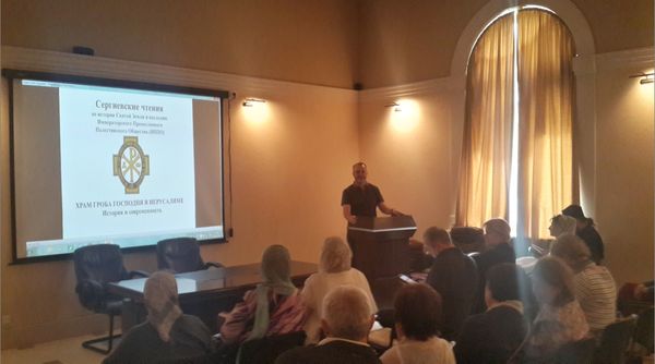 После ознакомительной экскурсии председатель Иерусалимского отделения Императорского Православного Палестинского Общества Павел Викторович Платонов провел для паломников образовательные чтения, которые были возрождены Иерусалимским отделением ИППО в 2009 году в историческом формате народных чтений для паломников, которые ранее назывались палестинскими, а теперь получили название Сергиевских в память первого Председателя ИППО великого князя Сергея Александровича. П.В. Платонов в сопровождении уникального иллюстративного материала прочитал лекцию на тему "Храм Гроба Господня: история и современность".